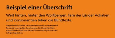 Was kann man besser lesen? Auf welchem Bild ist die Farbkombination so gewählt, dass der Text auf dem orangenen Hintergrund gut erkennbar ist – und auf welchem wird es eher anstrengend? Genau. Auf dem rechten Bild ist der Kontrast zu gering und eine schwarze Schrift ist hier die bessere Wahl, um Missverständnisse zu vermeiden. KONTEXT nutzt genau dieses Orange als Highlightfarbe – achtet dabei aber bewusst darauf, nur gut lesbare Kontrastfarben wie Schwarz einzusetzen.
